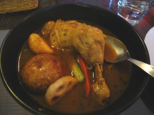 スープカレーは初めて食べました。 思いのほかに美味しくてビックリ。 スープの旨味と、カレーの辛さと、たっぷりの野菜、 柔らかい鶏モモ。