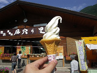 道の駅「風穴の里」でソフトクリームとおやきを食していると、